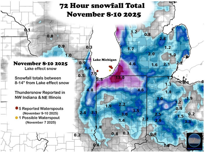 November 9-10 2025: 4 waterspouts off SW Michigan & 8+ft waves